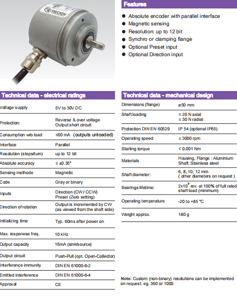 | ○ | 分辨率(脈沖數(shù)/圈):可達(dá) 12 位 | ○ | 絕對精度:≤ ±0.35° | |||