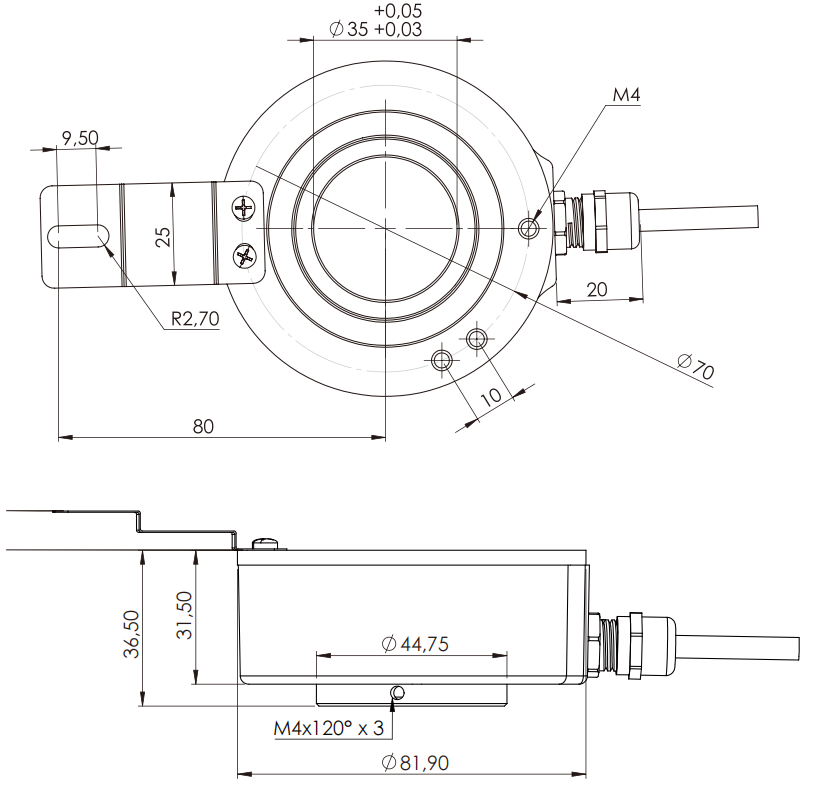 | ○ | 輸出頻率:<300 kHz | ○ | 輸出信號:90° 移相A、B、Z、+ 取反 | |||
