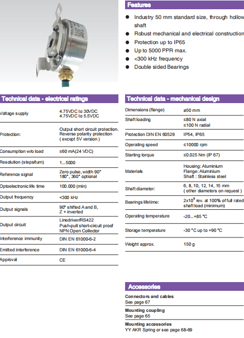 | ○ | 空載電流:≤ 60mA(24 VDC) | ○ | 分辨率(脈沖數(shù)/轉(zhuǎn)):1... 5000 | |||